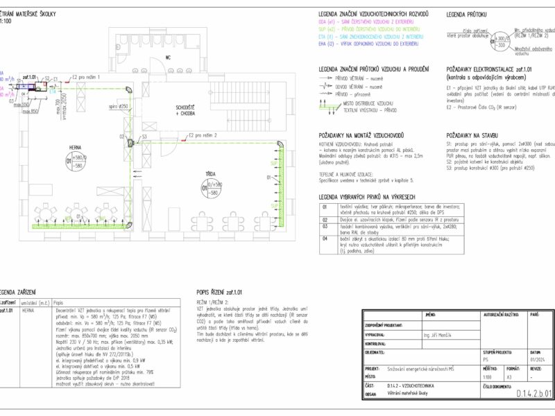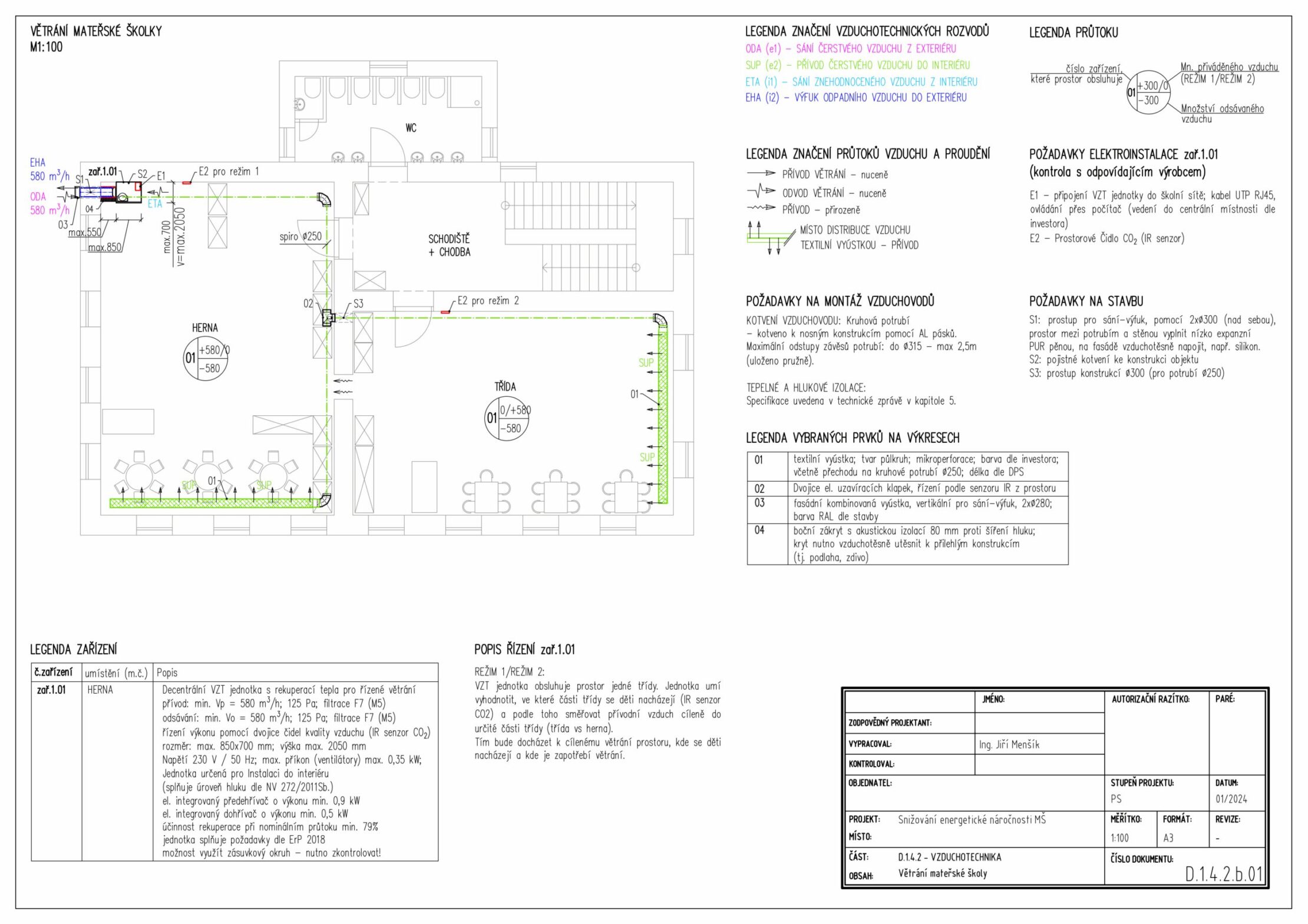 Spolupracovali jsme na projektu větrání mateřské školy. Pan Menšík navrhl energeticky úsporné řešení s rekuperací, které splnilo všechny hygienické normy. Komunikace byla výborná, termín dodržen. Jednoznačně doporučuji.